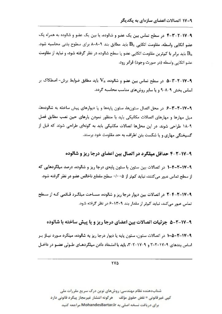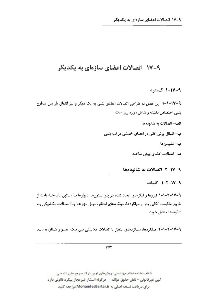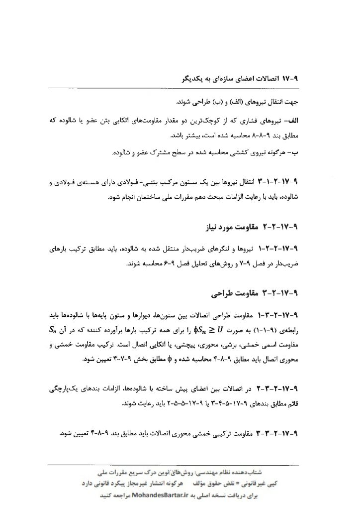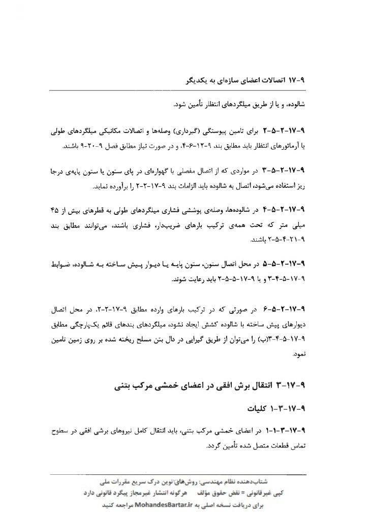 مبحث 9 مقررات ملی ساختمان (طرح و اجرای ساختمان های بتن آرمه) بخش 17-9 اتصالات اعضای سازه ای به یکدیگر