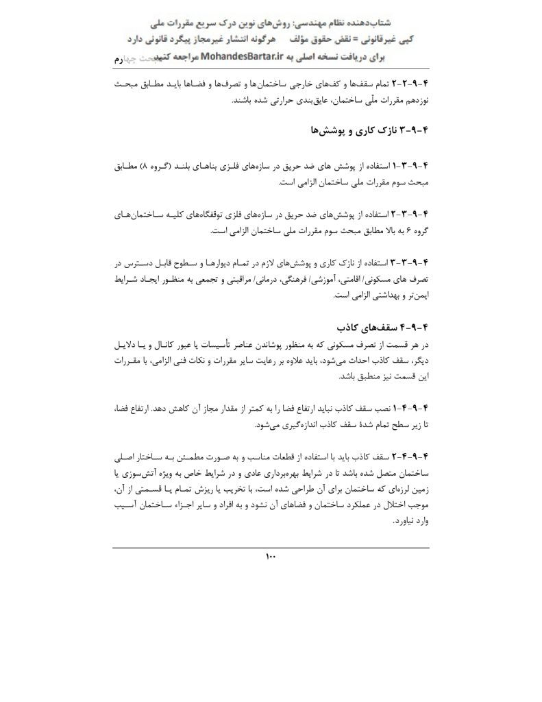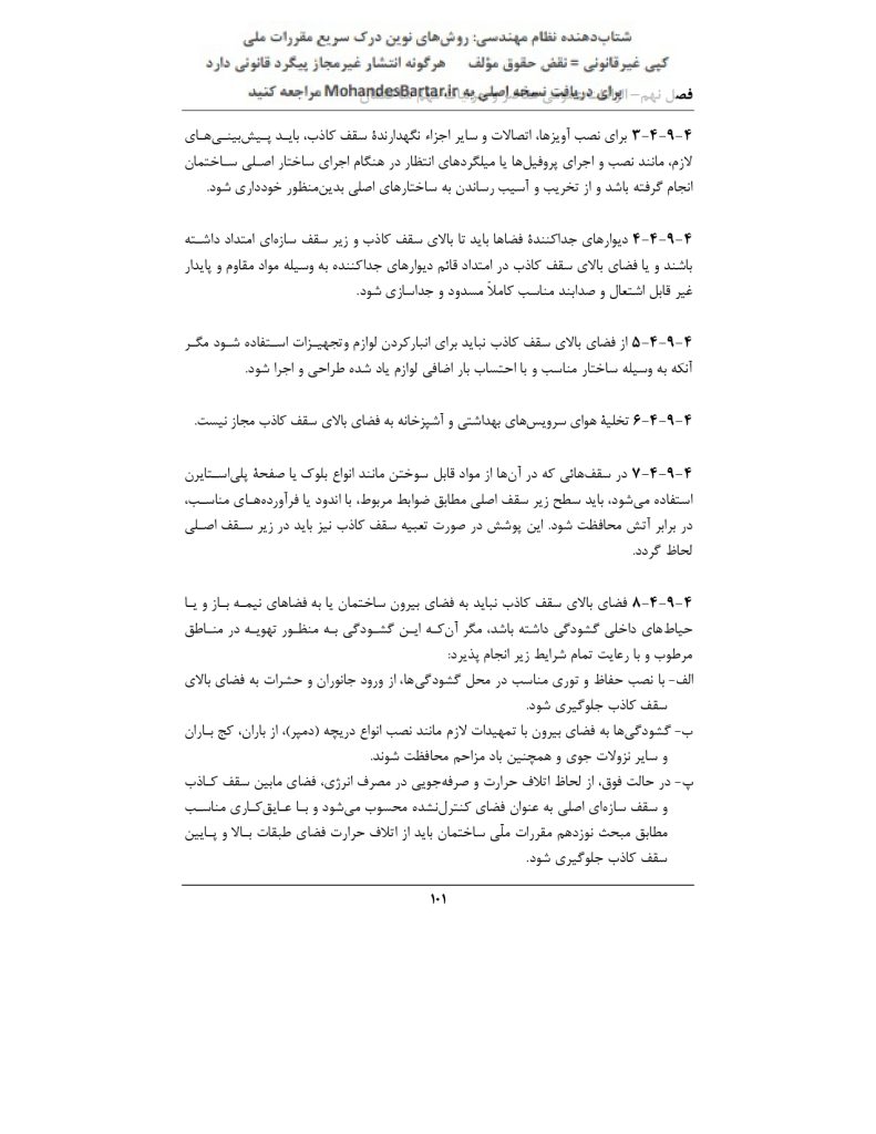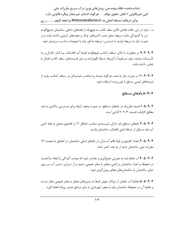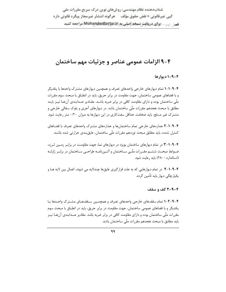 مبحث 4 مقررات ملی ساختمان (الزامات عمومی ساختمان) بخش ٩-٤ الزامات عمومی عناصر و جزئیات مهم ساختمان
