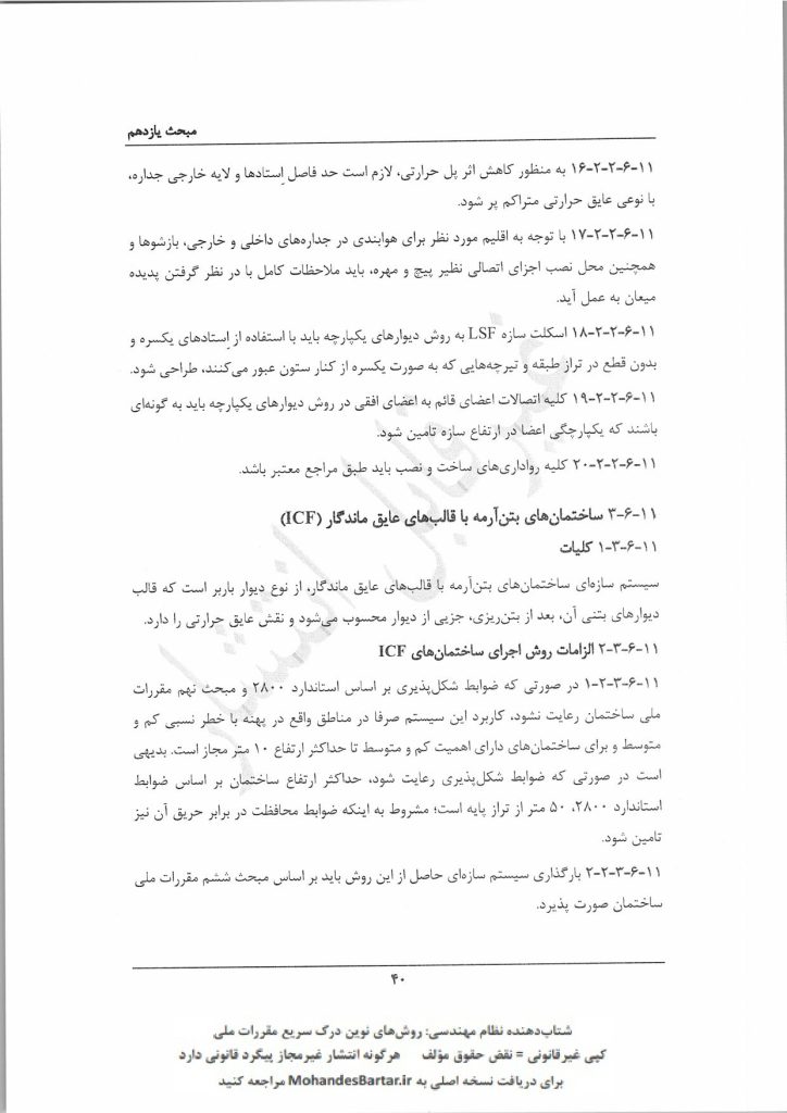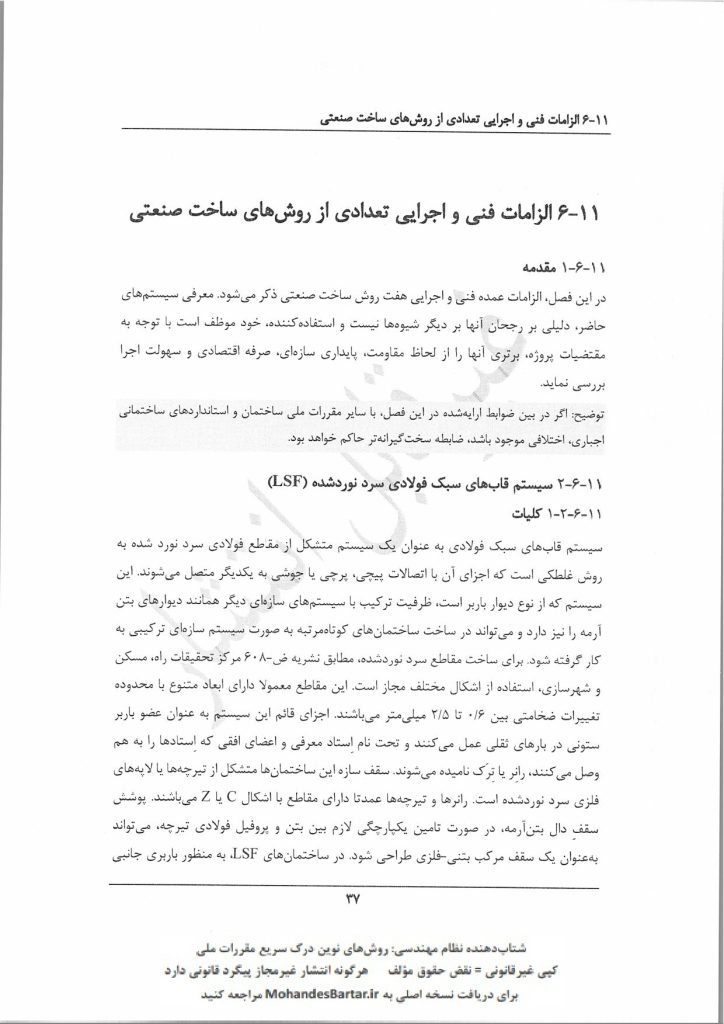 مبحث 11 مقررات ملی ساختمان (طرح و اجرای صنعتی ساختمان ها) بخش ٦-١١ الزامات فنی و اجرایی تعدادی از روش های ساخت صنعتی