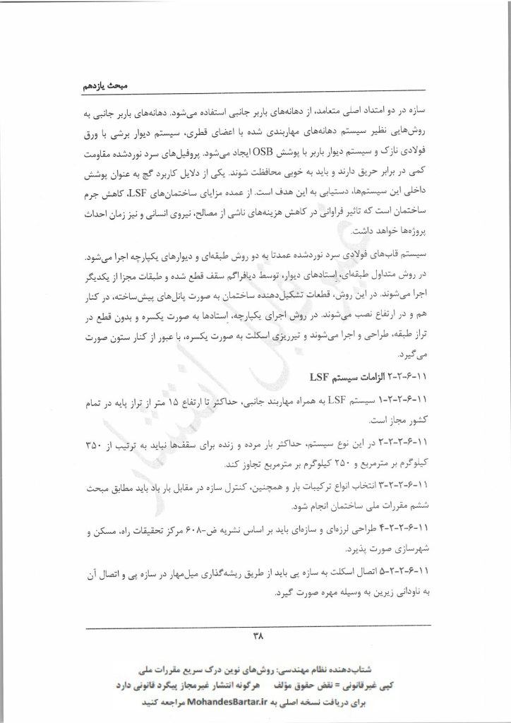پاسخ (بند 1-7-6-11 – صفحه 59): فقط در ساختمان‌های انبوه‌سازی با دیوار باربر و سقف بتنی قابل استفاده است.