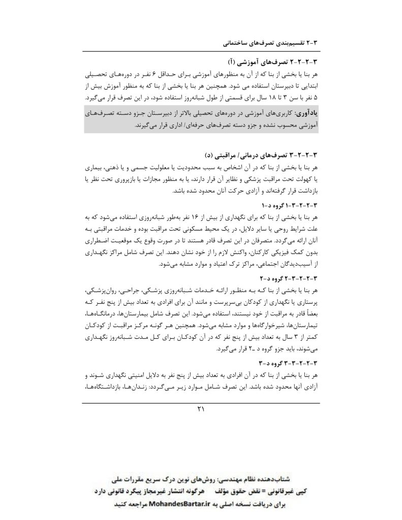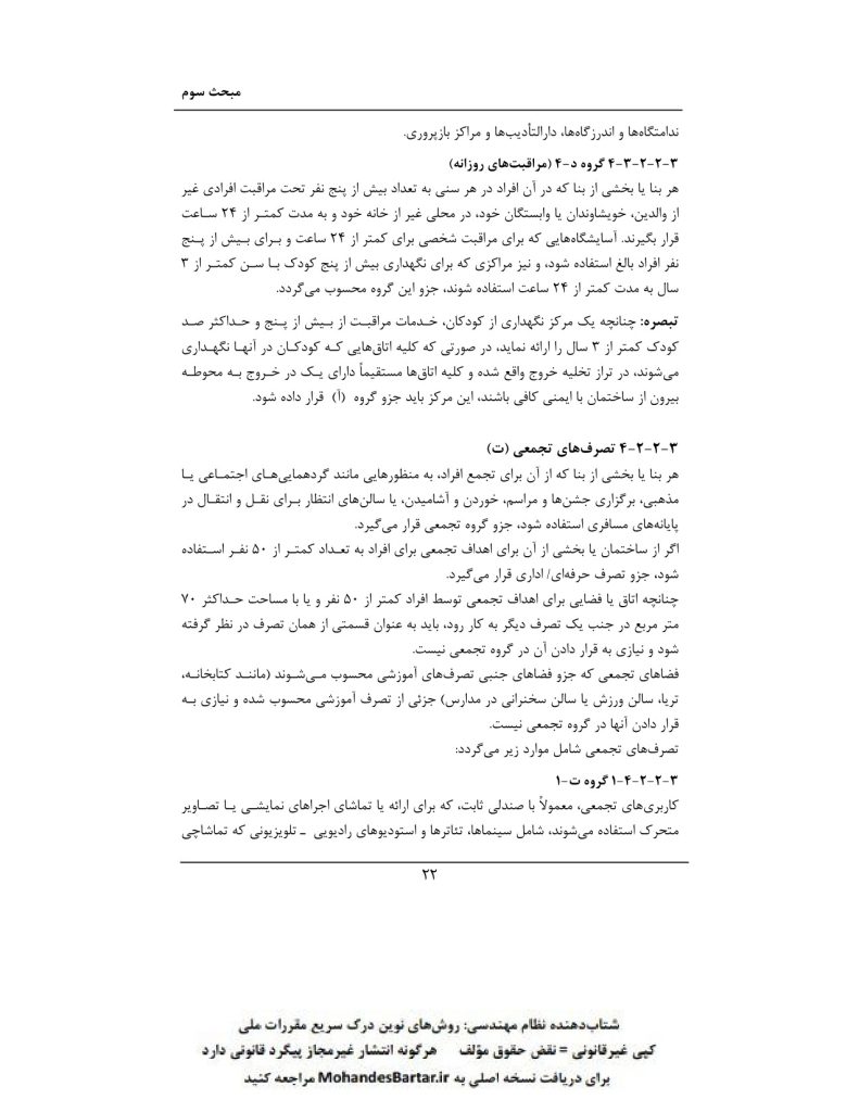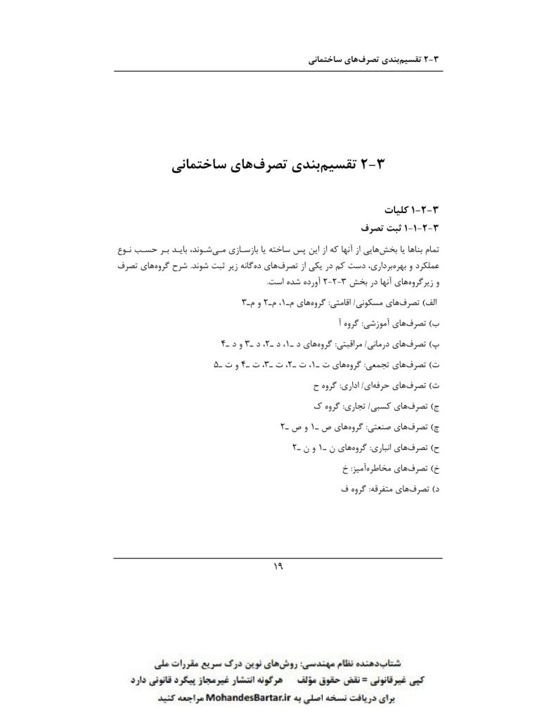مبحث 3 مقررات ملی ساختمان (حفاظت ساختمان ها در مقابل حریق) بخش ٢-٣ تقسیم بندی تصرف های ساختمانی