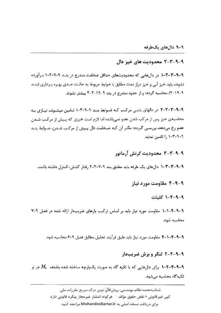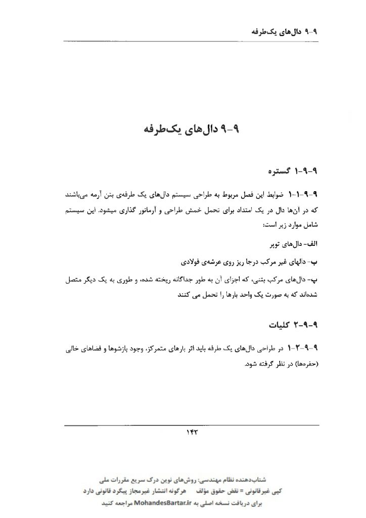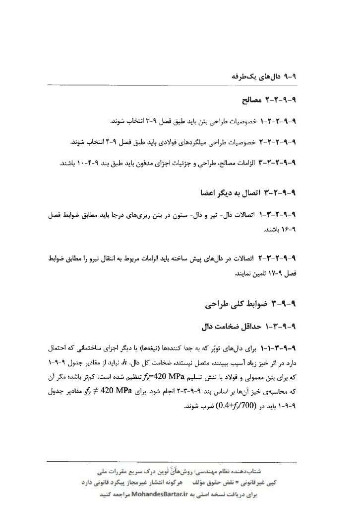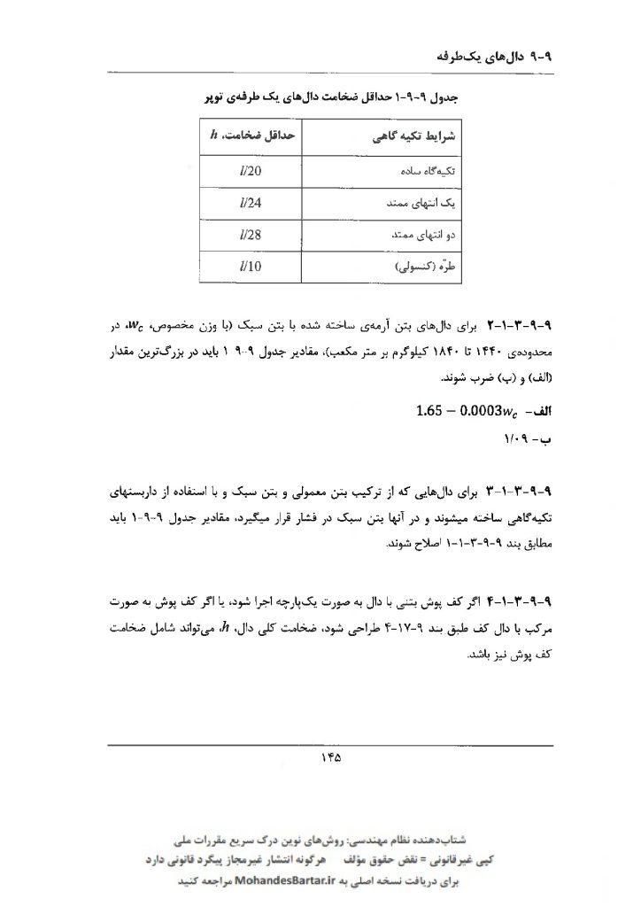 مبحث 9 مقررات ملی ساختمان (طرح و اجرای ساختمان های بتن آرمه) بخش 9-9 دال های یک طرفه