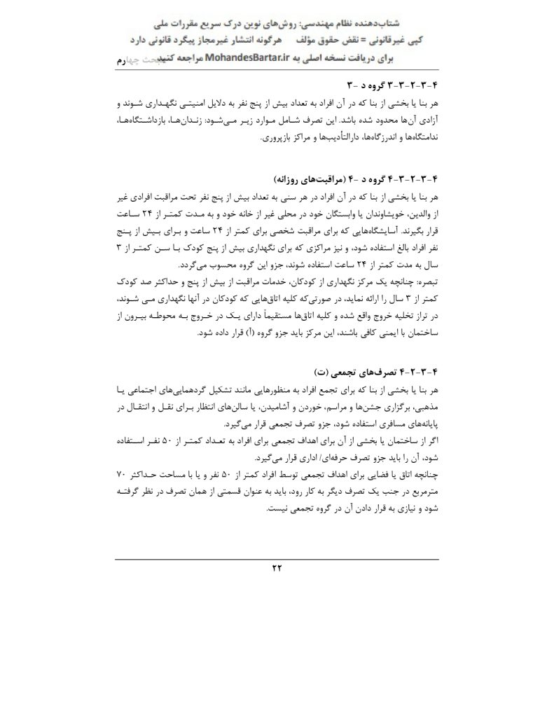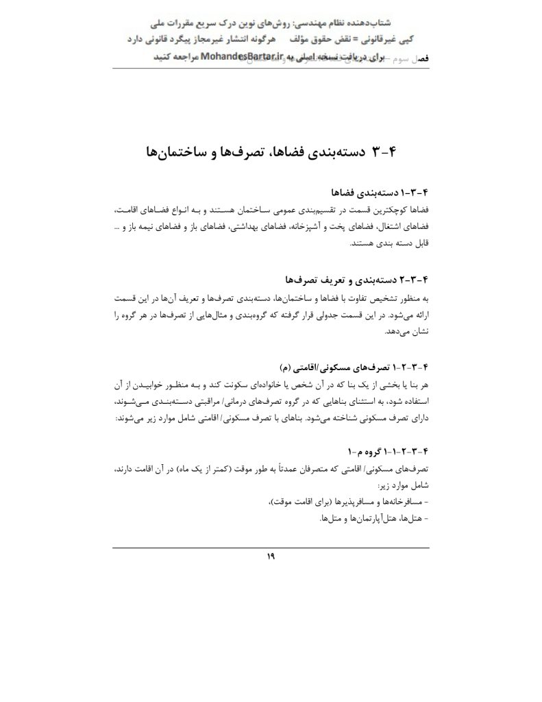 مبحث 4 مقررات ملی ساختمان (الزامات عمومی ساختمان) بخش ٣-٤ دسته بندی فضاها، تصرف ها و ساختمان ها