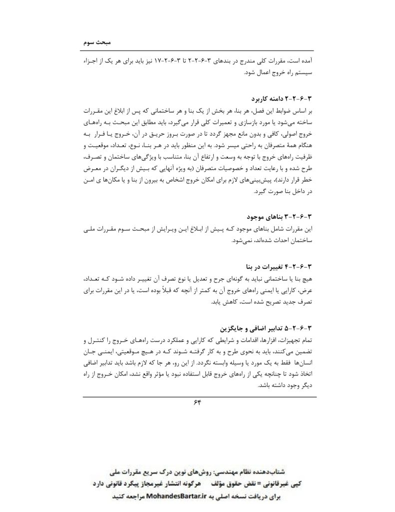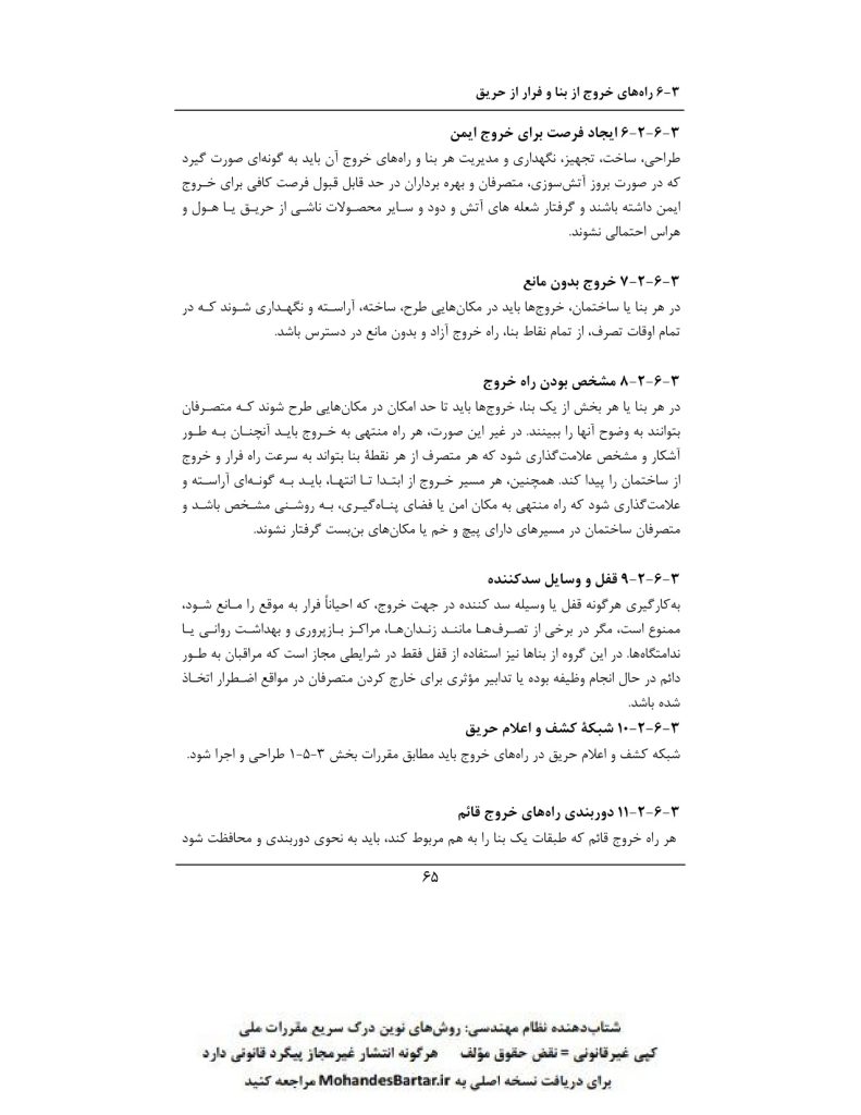 مبحث 3 مقررات ملی ساختمان (حفاظت ساختمان ها در مقابل حریق) بخش ٦-٣ راه های خروج از بنا و فرار از حریق