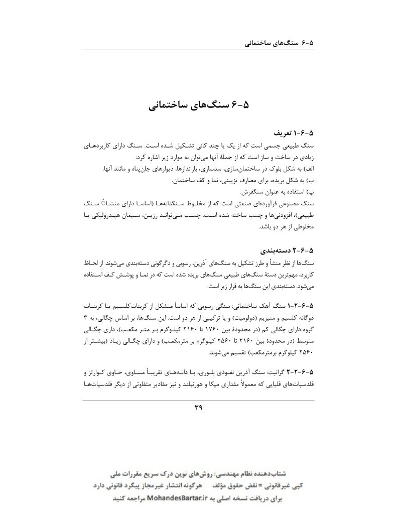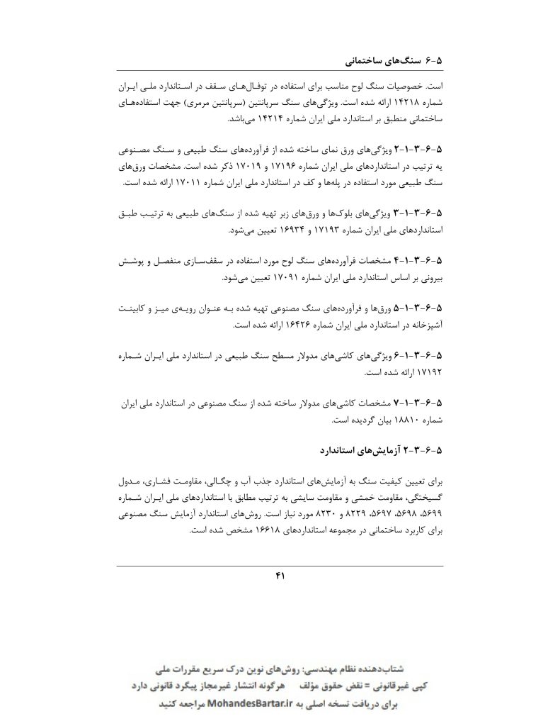 مبحث 5 مقررات ملی ساختمان (مصالح و فرآورده های ساختمانی) بخش ٦-٥ سنگ های ساختمانی