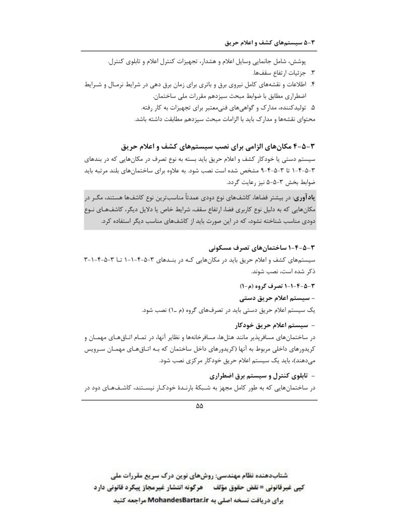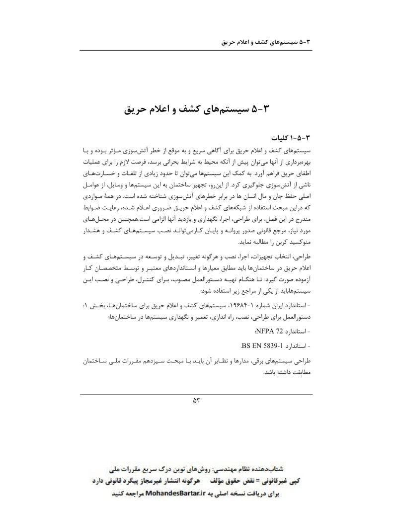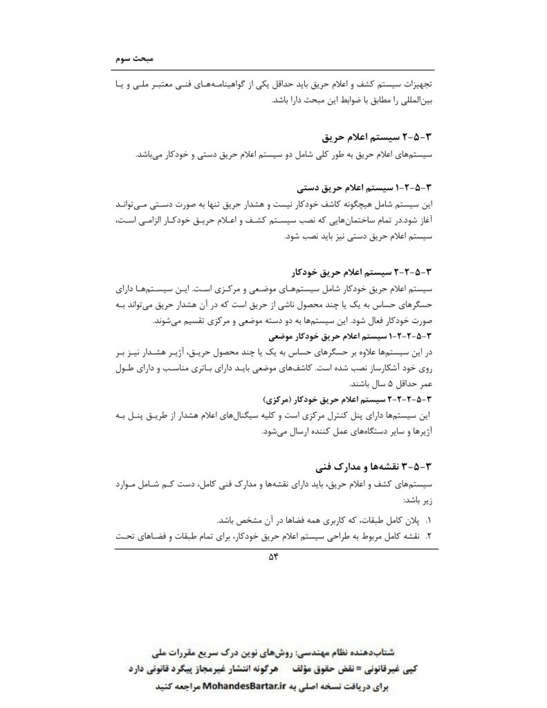 مبحث 3 مقررات ملی ساختمان (حفاظت ساختمان ها در مقابل حریق) بخش ٥-٣ سیستم های کشف و اعلام حریق