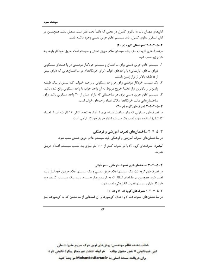 📝 توضیح مهندس برتر: این الزام برای ساختمانهای با کاربری اقامتی جمعی، جهت شناسایی سریع حریق در فضاهای مشترک و خصوصی طراحی شده است.