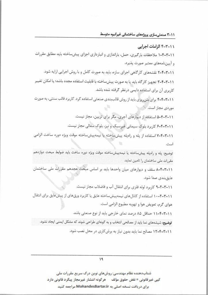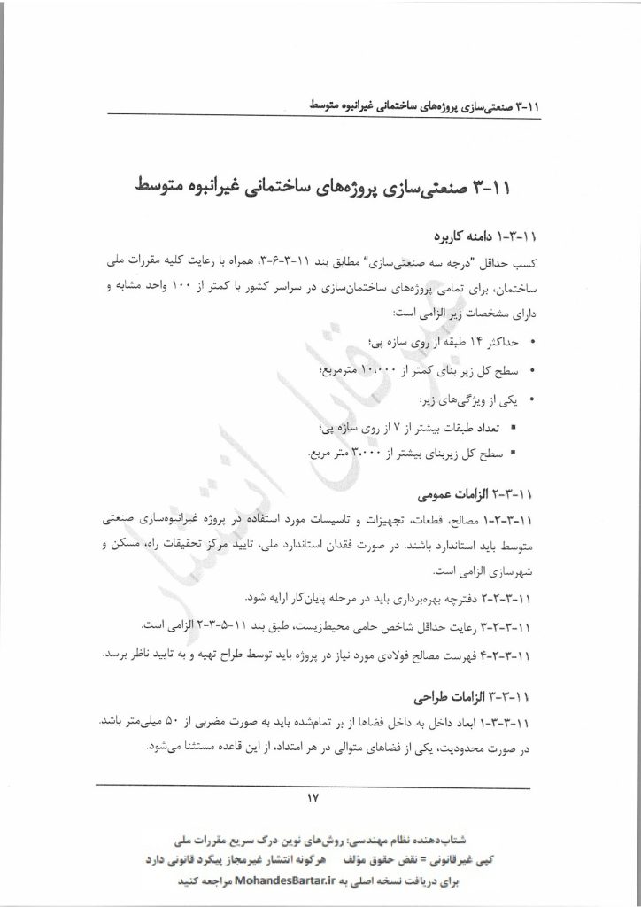 مبحث 11 مقررات ملی ساختمان (طرح و اجرای صنعتی ساختمان ها) بخش ٣-١١ صنعتی سازی ساختمان های غیر انبوه متوسط