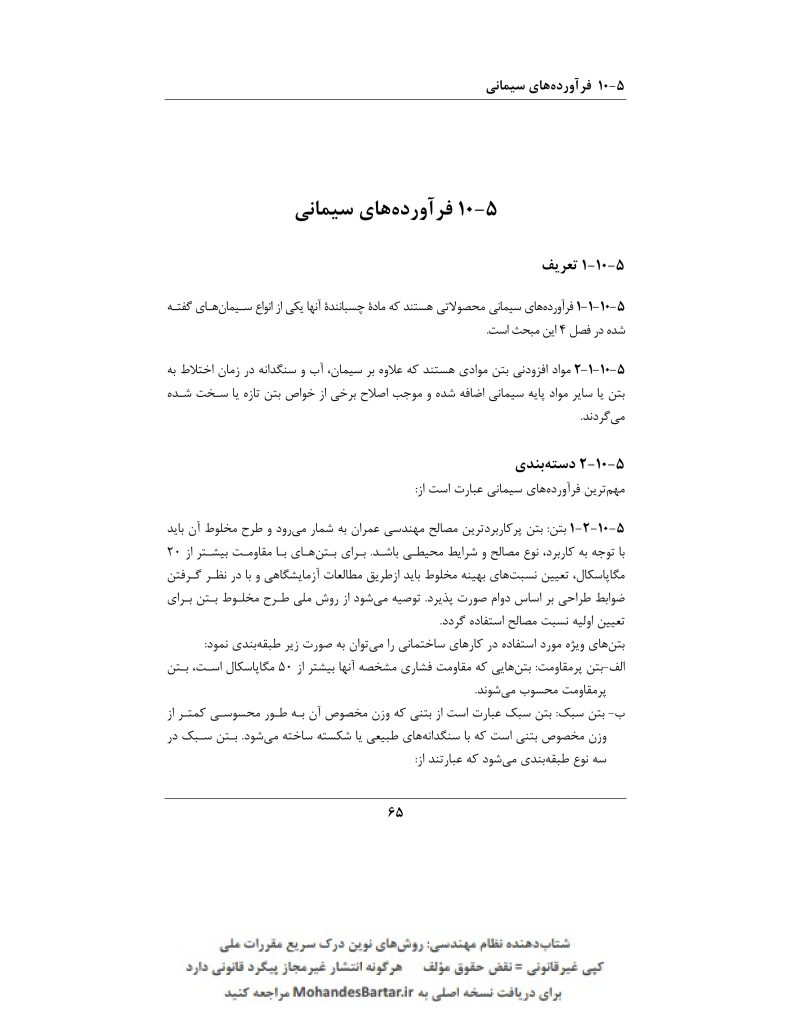 مبحث 5 مقررات ملی ساختمان (مصالح و فرآورده های ساختمانی) بخش ١٠-٥ فرآورده های سیمانی