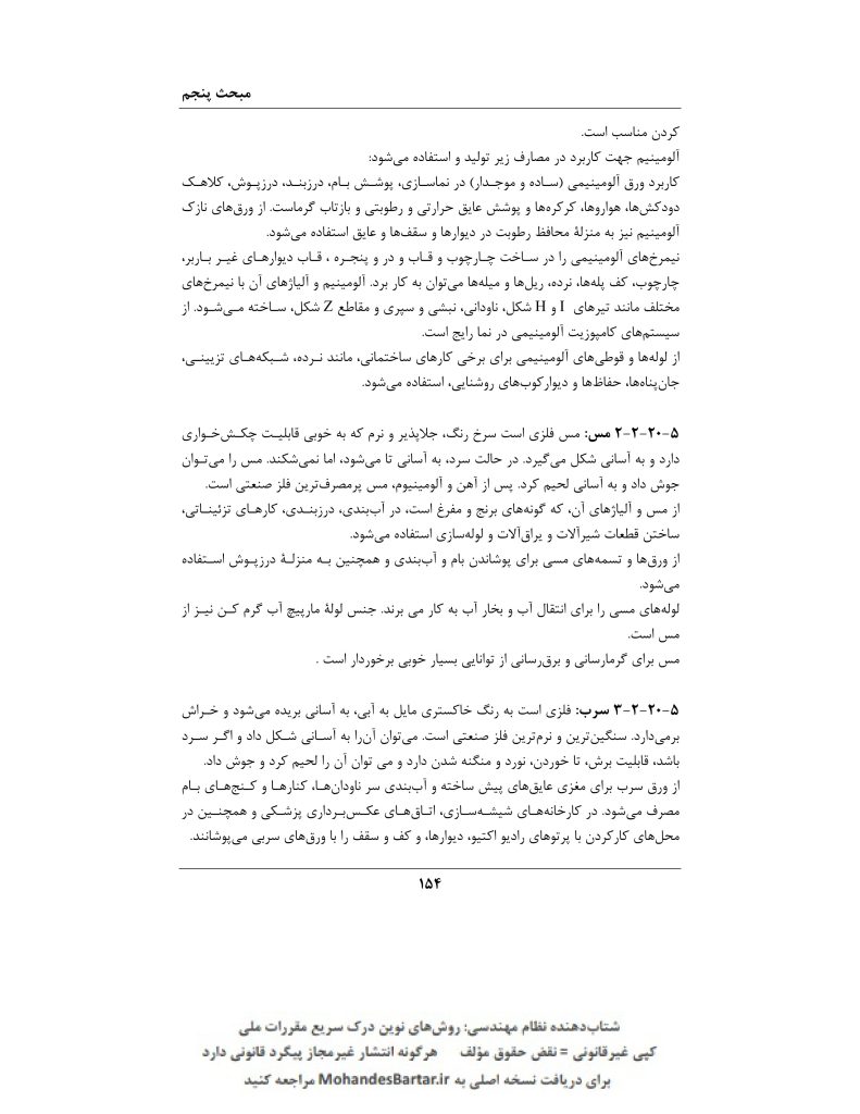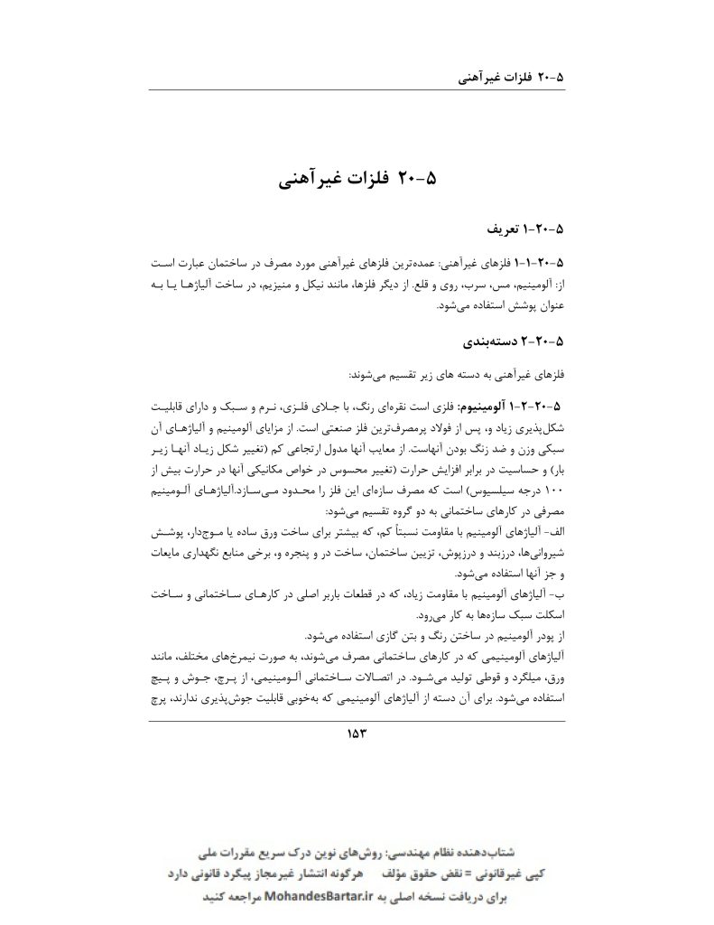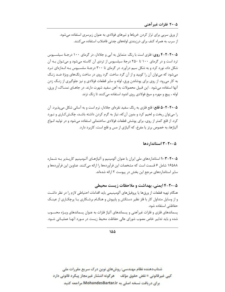 مبحث 5 مقررات ملی ساختمان (مصالح و فرآورده های ساختمانی) بخش ٢٠-٥ فلزات غیرآهنی