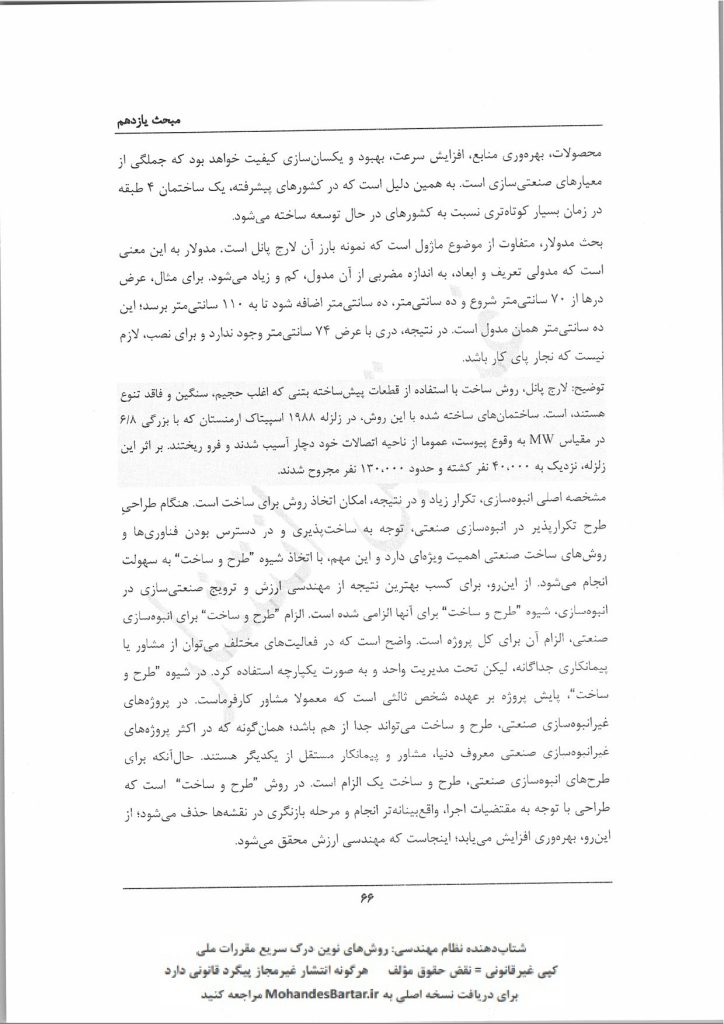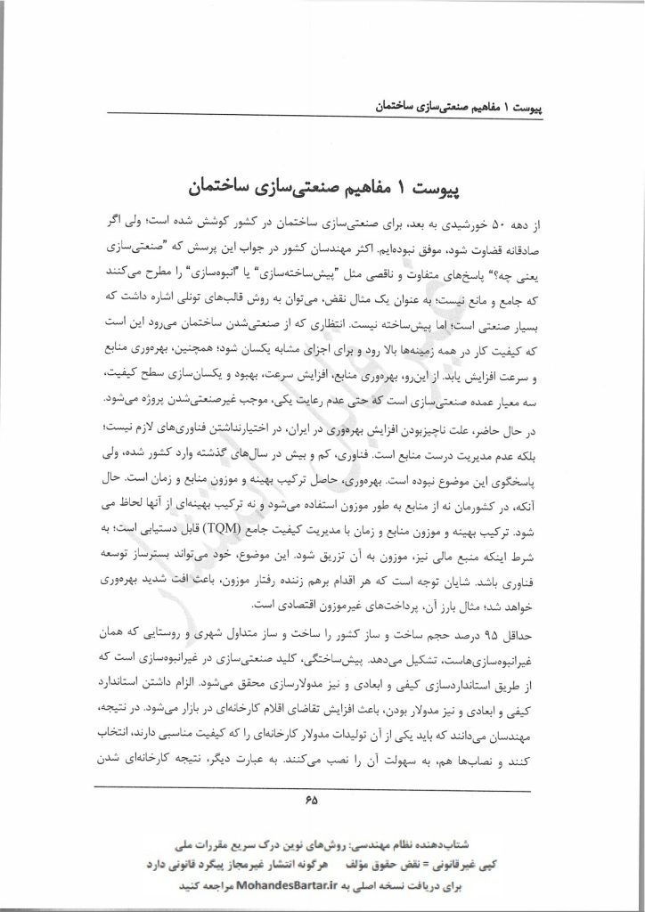 ✅ بر اساس پیوست ۱ صفحه ۶۶: پیشساختگی از طریق استانداردسازی کیفی و ابعادی و همچنین مدولارسازی.