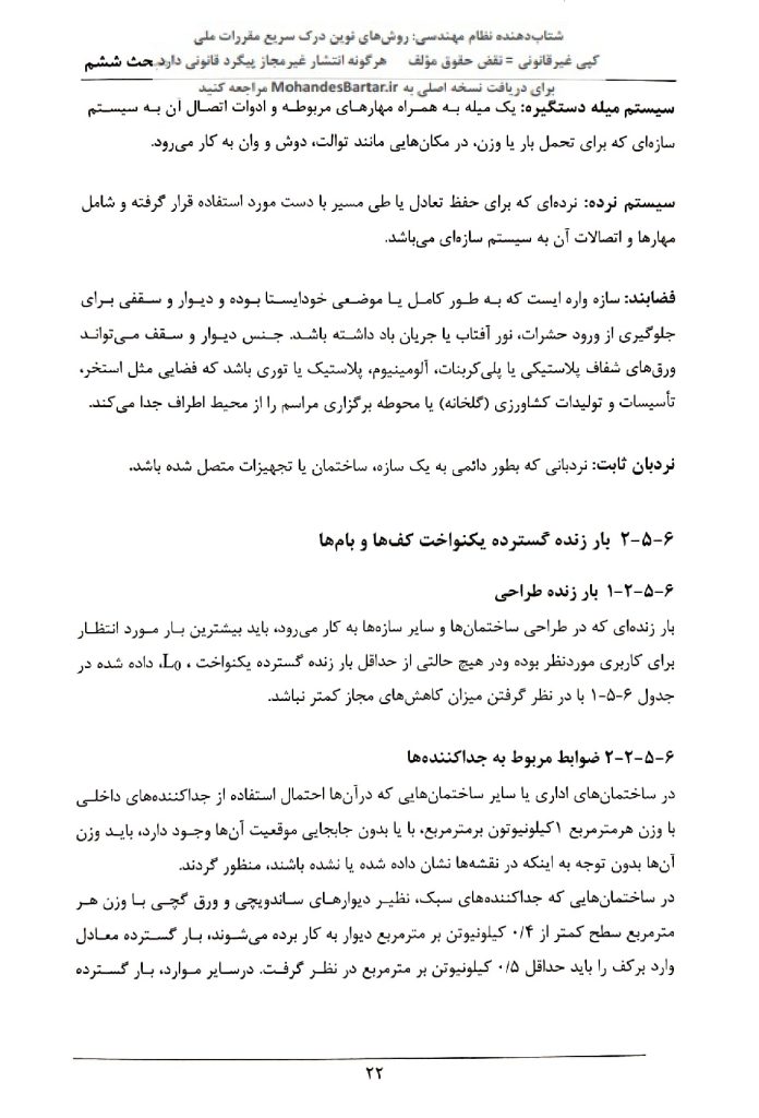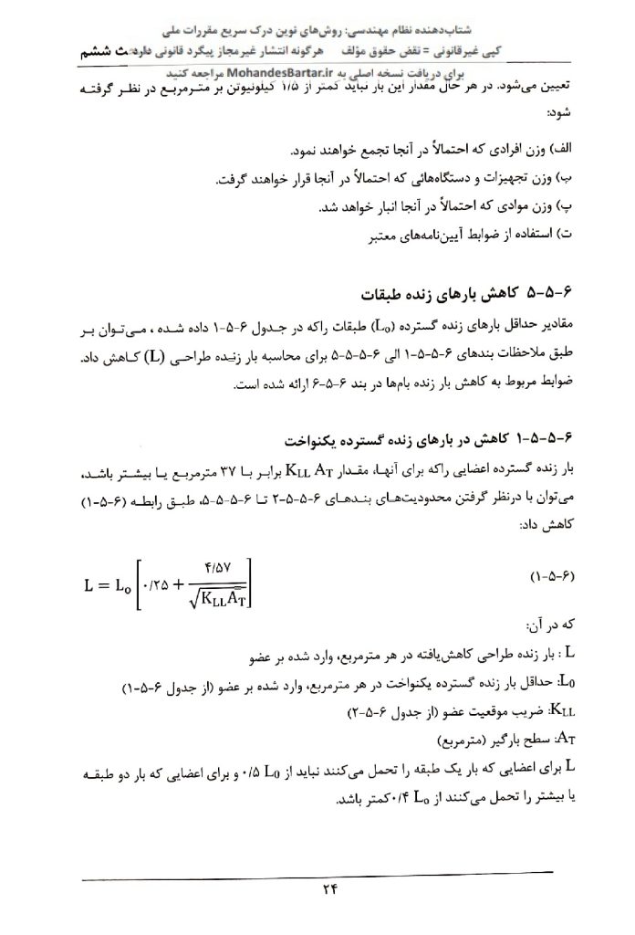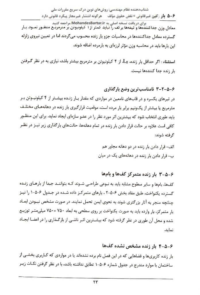 مبحث 6 مقررات ملی ساختمان (بارهای وارد بر ساختمان) بخش 5-6 بار زنده