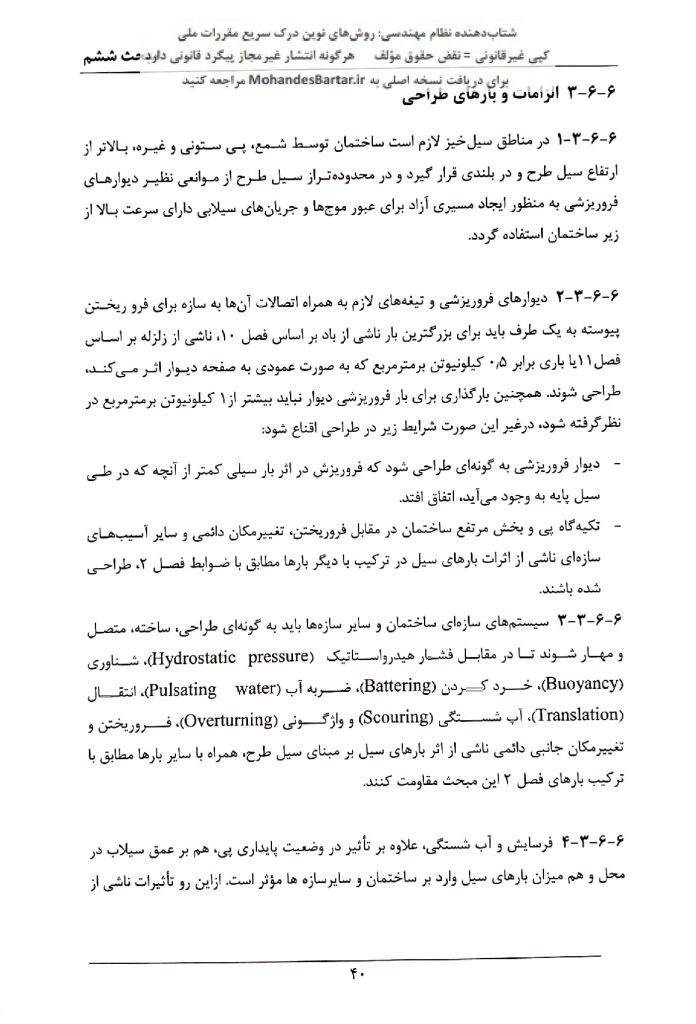 مبحث 6 مقررات ملی ساختمان (بارهای وارد بر ساختمان) بخش 6-6 بار سیل