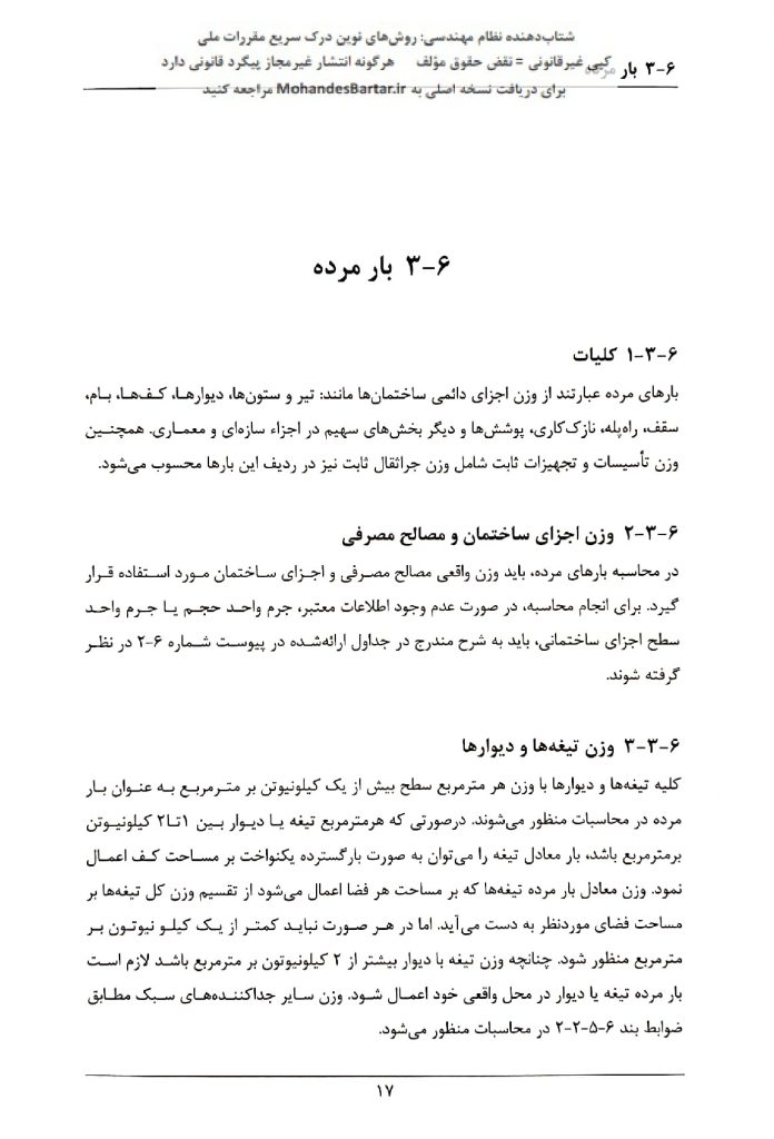 مبحث 6 مقررات ملی ساختمان (بارهای وارد بر ساختمان) بخش 3-6 بار مرده