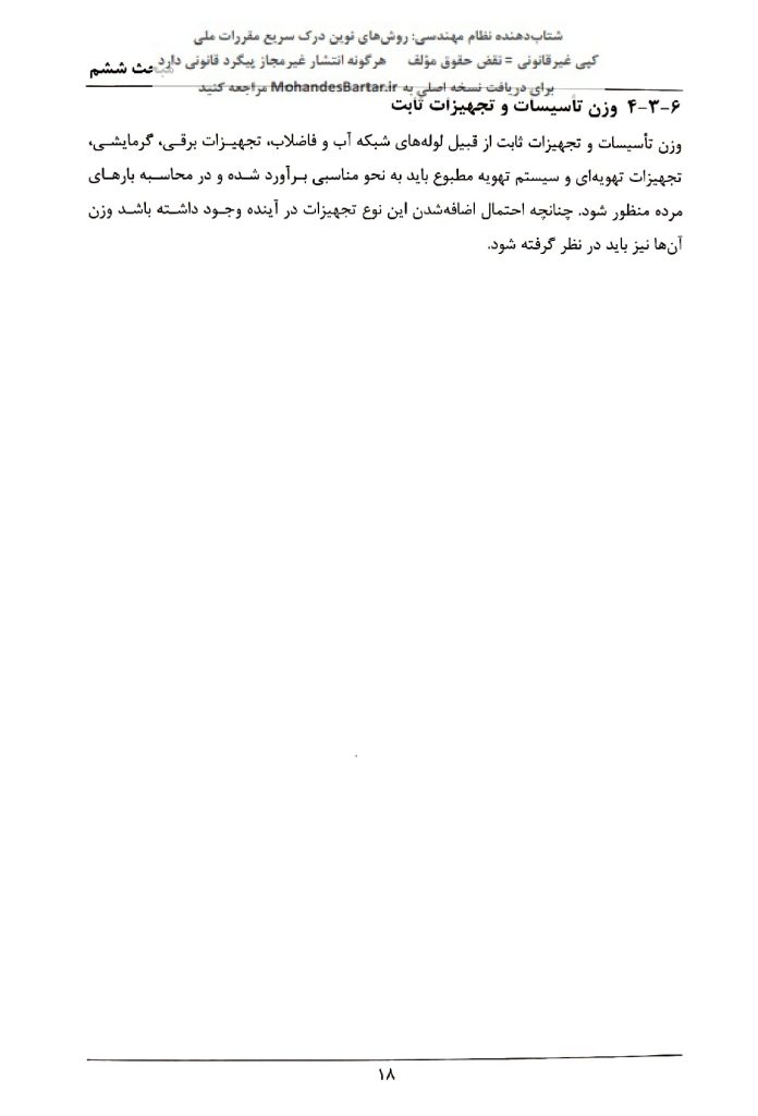 🔍 سؤال: وزن کدام سیستم در بند ۴-۳-۶، صفحه ۱۸ بهعنوان بار مرده ذکر نشده است؟