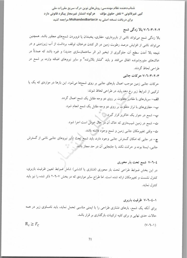 📌 بر اساس بند ۴-۱-۷-۶-۷ صفحات ۸۳-۸۴ و جدول ۱-۶-۷: