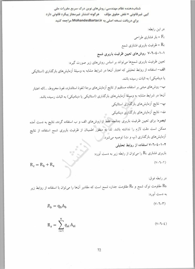 🔍 سؤال: چهار روش تعیین ظرفیت باربری شمع چیست؟