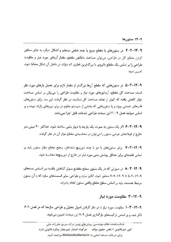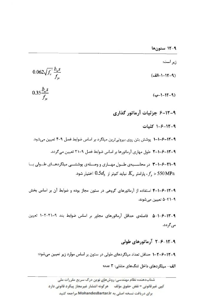 مبحث 9 مقررات ملی ساختمان (طرح و اجرای ساختمان های بتن آرمه) بخش 12-9 ستون ها