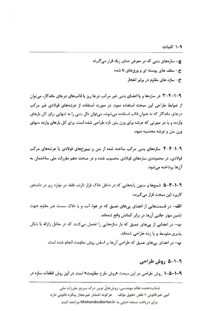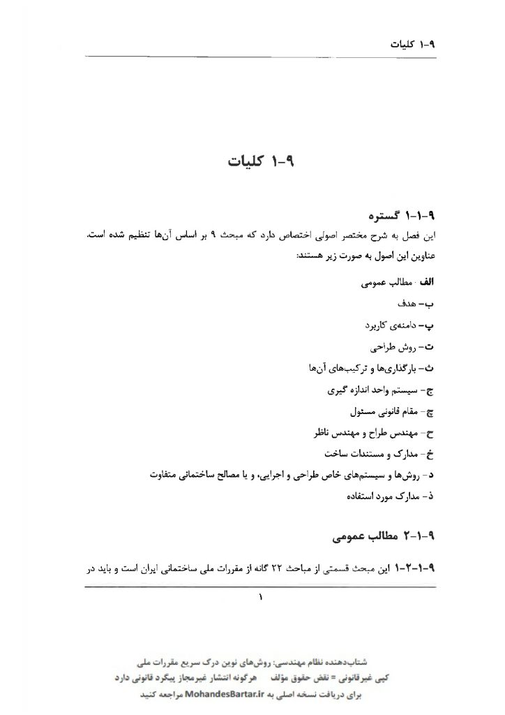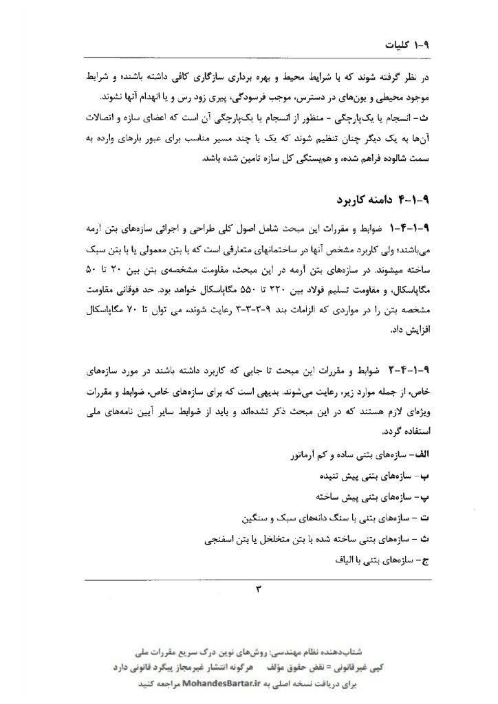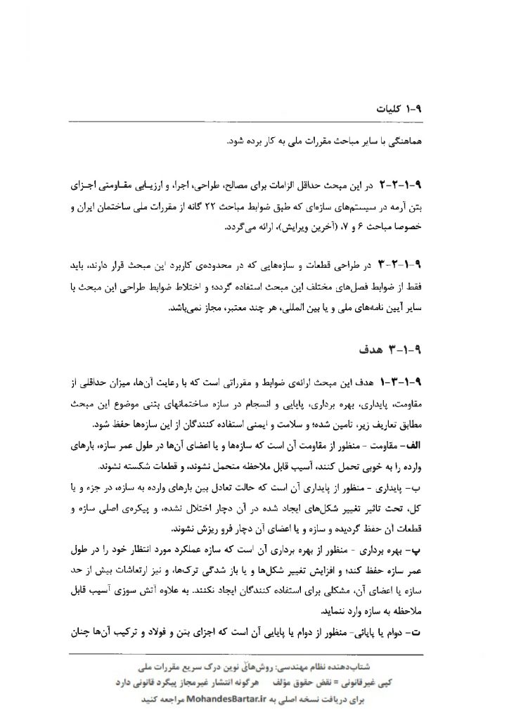 مبحث 9 مقررات ملی ساختمان (طرح و اجرای ساختمان های بتن آرمه) بخش 9-1 کلیات