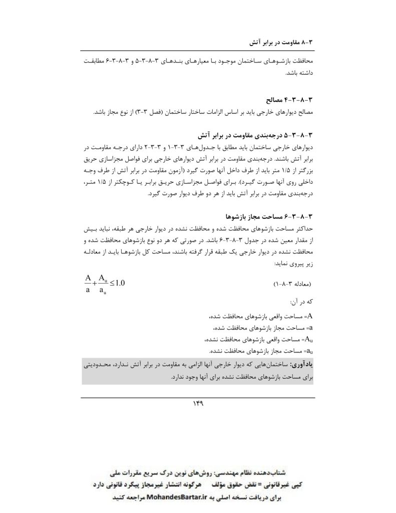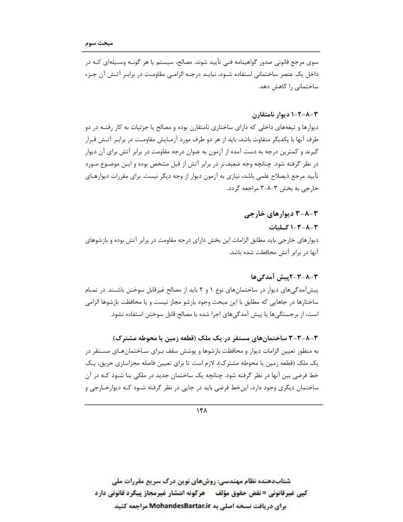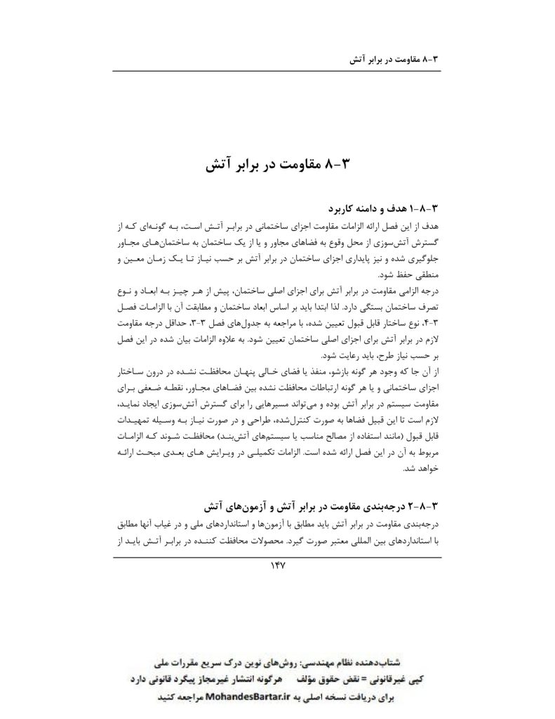 مبحث 3 مقررات ملی ساختمان (حفاظت ساختمان ها در مقابل حریق) بخش ٨-٣ مقاومت در برابر آتش