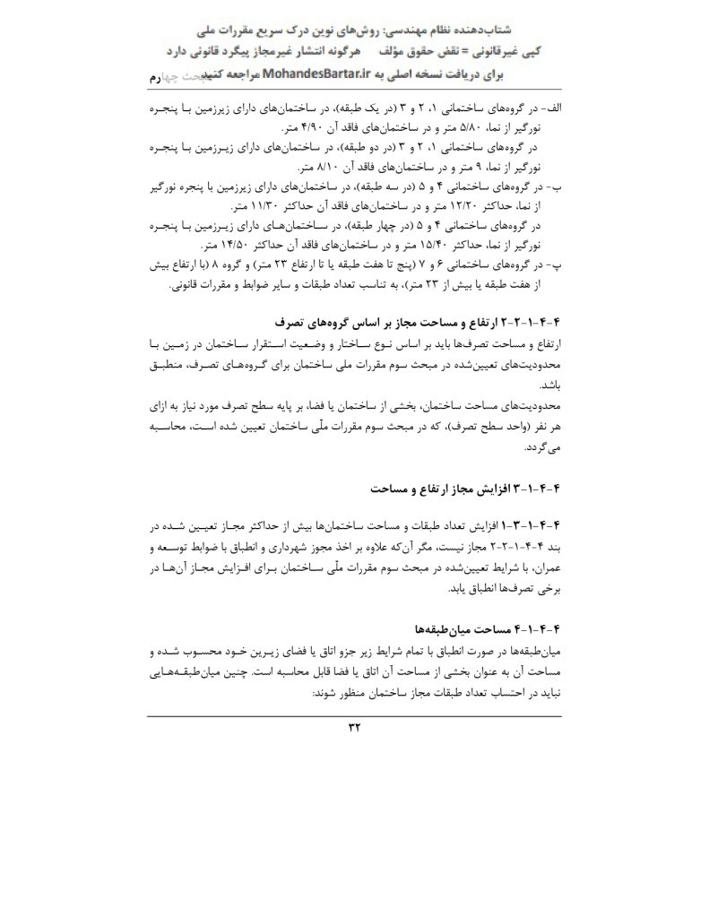 ✅ پاسخ: بر اساس بند 1-2-1-4-4 صفحه 31: ارتفاع مجاز ۹ متر 🏢