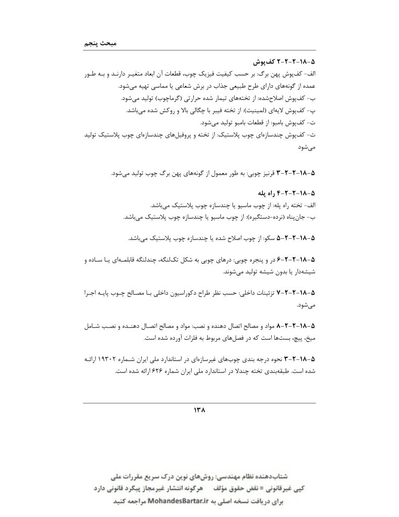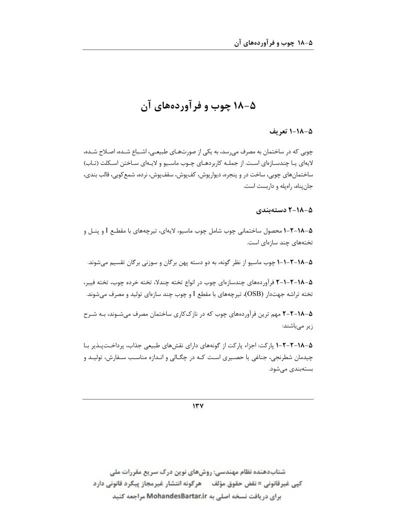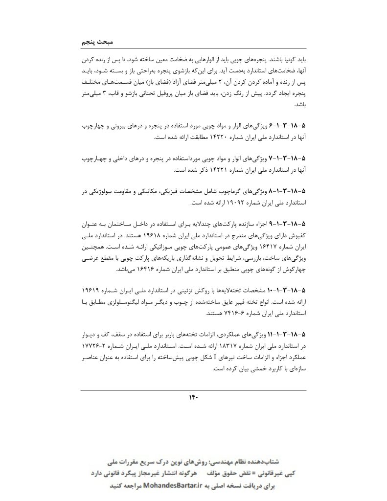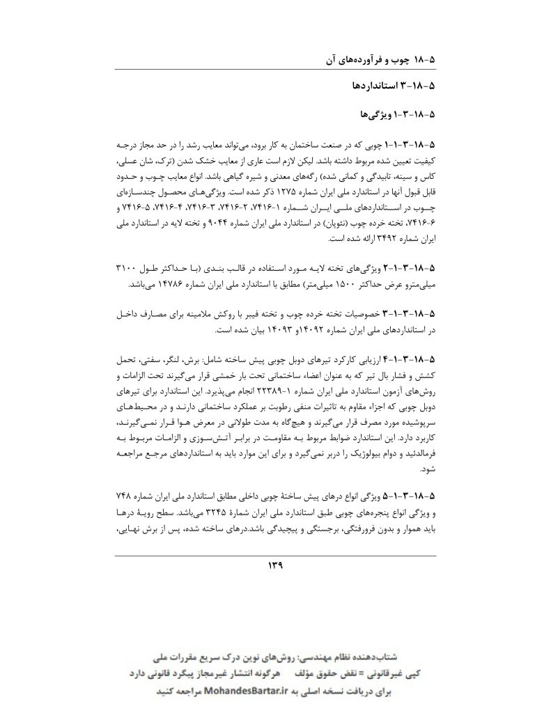مبحث 5 مقررات ملی ساختمان (مصالح و فرآورده های ساختمانی) بخش ١٨-٥ چوب و فرآورده های آن