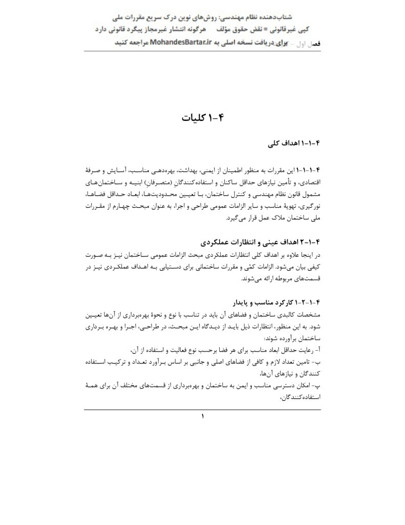 مبحث 4 مقررات ملی ساختمان (الزامات عمومی ساختمان) بخش ١-٤ کلیات