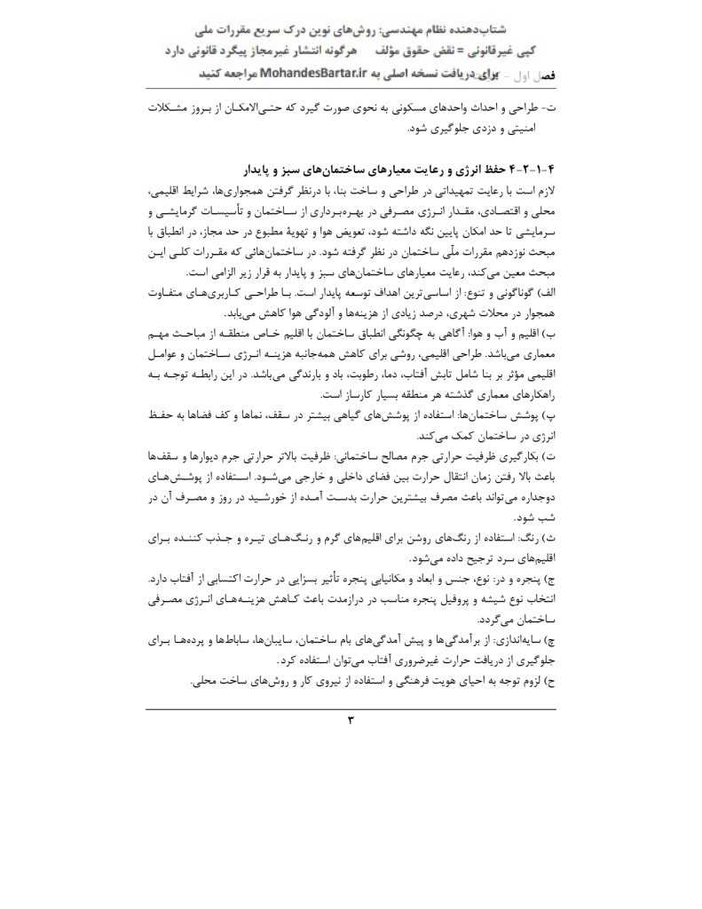 🔍 سؤال: معیارهای ساختمانهای سبز و پایدار بر اساس بند ۴-۲-۱-۴ چیست؟ (یکی از موارد را نام ببرید)