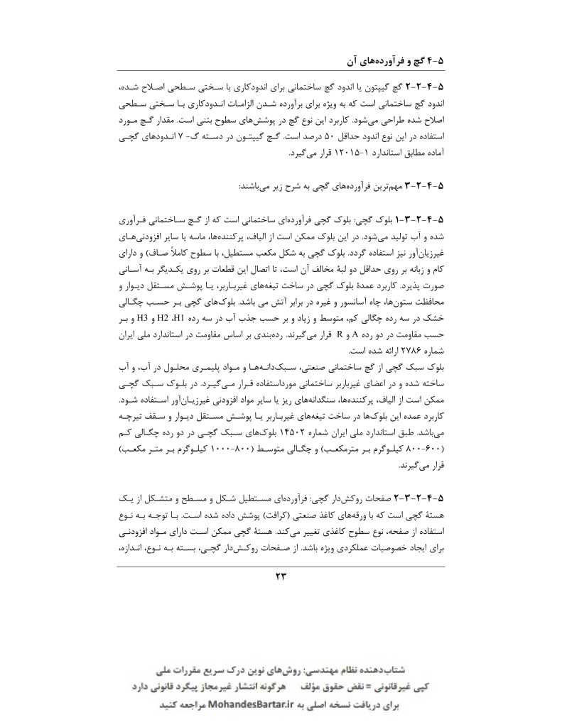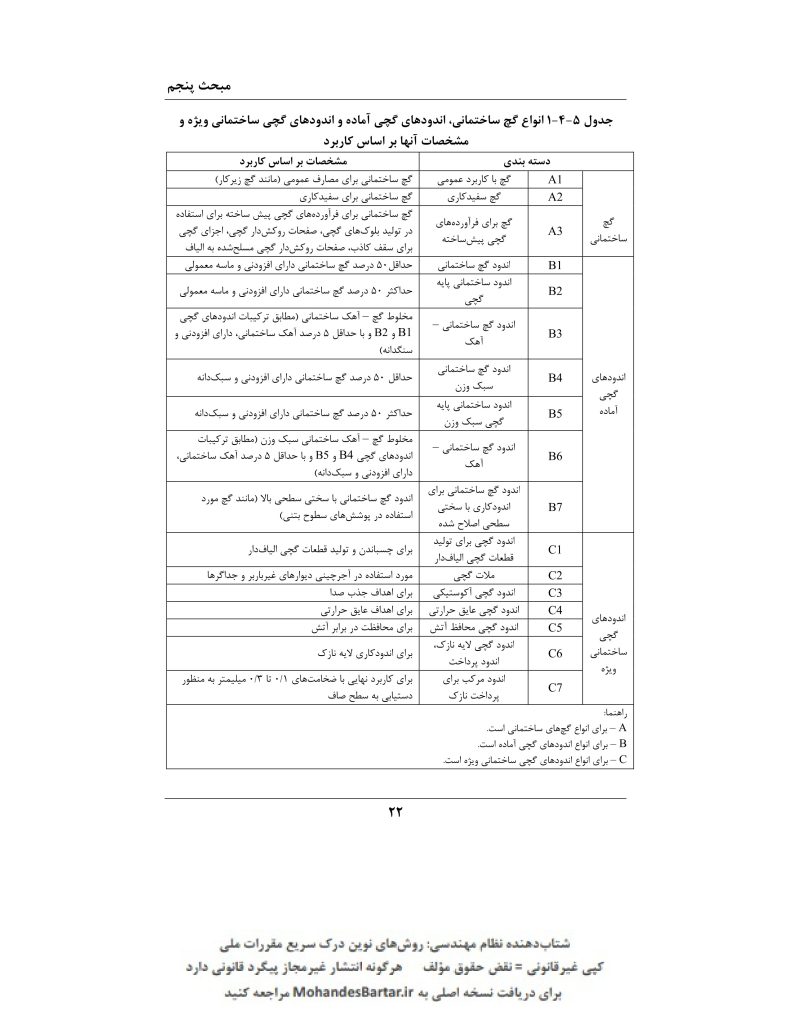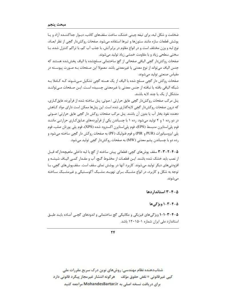 مبحث 5 مقررات ملی ساختمان (مصالح و فرآورده های ساختمانی) بخش ٤-٥ گچ و فرآورده های آن